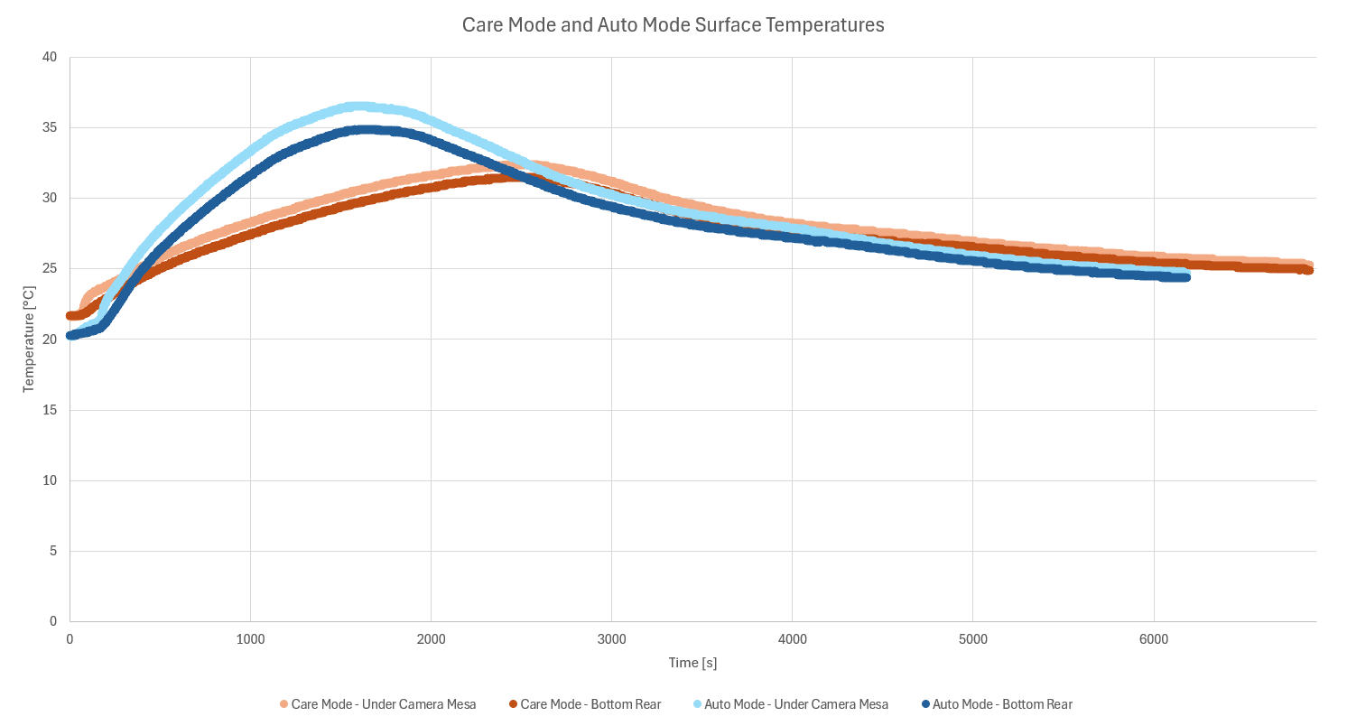 Note that the two tests did have slightly different beginning temperatures, with the Care Mode starting temperature 1.4°C higher.