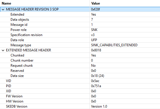 Apple's VID is 0x05AC(this is 1452 in decimal), and connecting iPhones to the Anker Nano 45W(A121D) I was able to find the PID of the iPhone 15 as 0x7510, the iPhone 16e as 0x751C, and the iPhone 17 Pro as 0x751A. This was consistent when connecting to the Anker Nano 45W(A121D), but I did read a PID of 0x7519 when I connected the iPhone 17 Pro to the Apple 40W Dynamic charger. I'm not an expert in this domain so there may be more factors involved here.