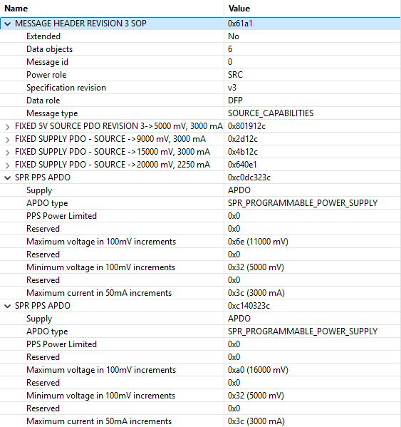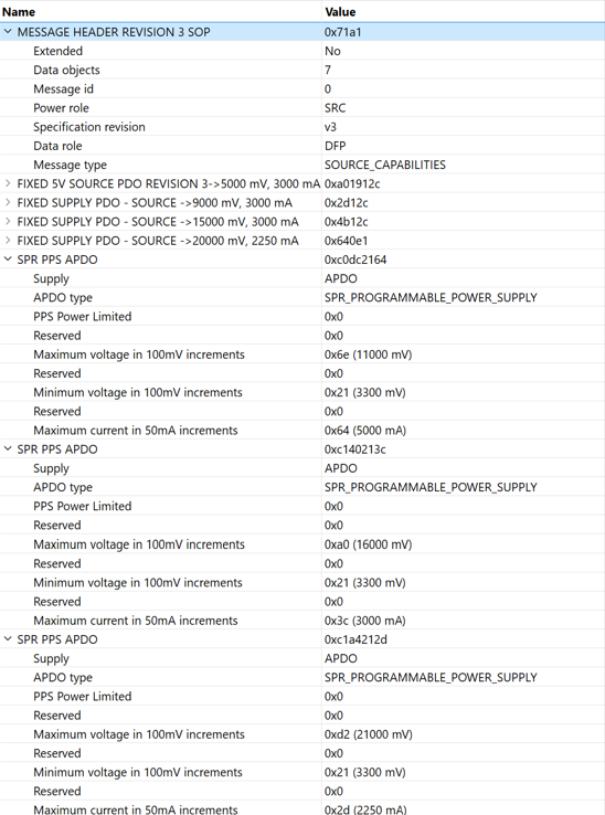 - SPR PPS APDO: 3.3 V to 16 V, 3 A