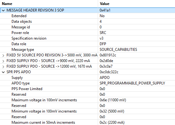 - SPR PPS APDO: 5 V to 11 V, 2.2 A
