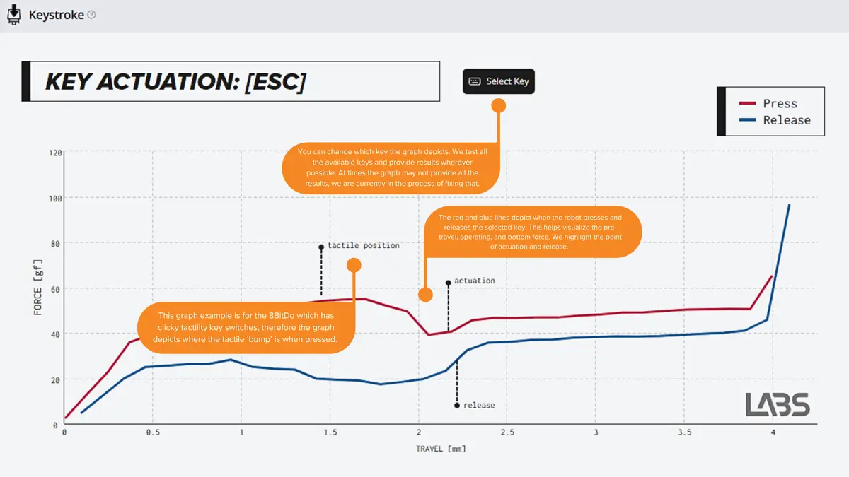 The feel of a keyboard is largely determined by its switches. Our keystroke and force actuation tests provide detailed information about each switch's characteristics.