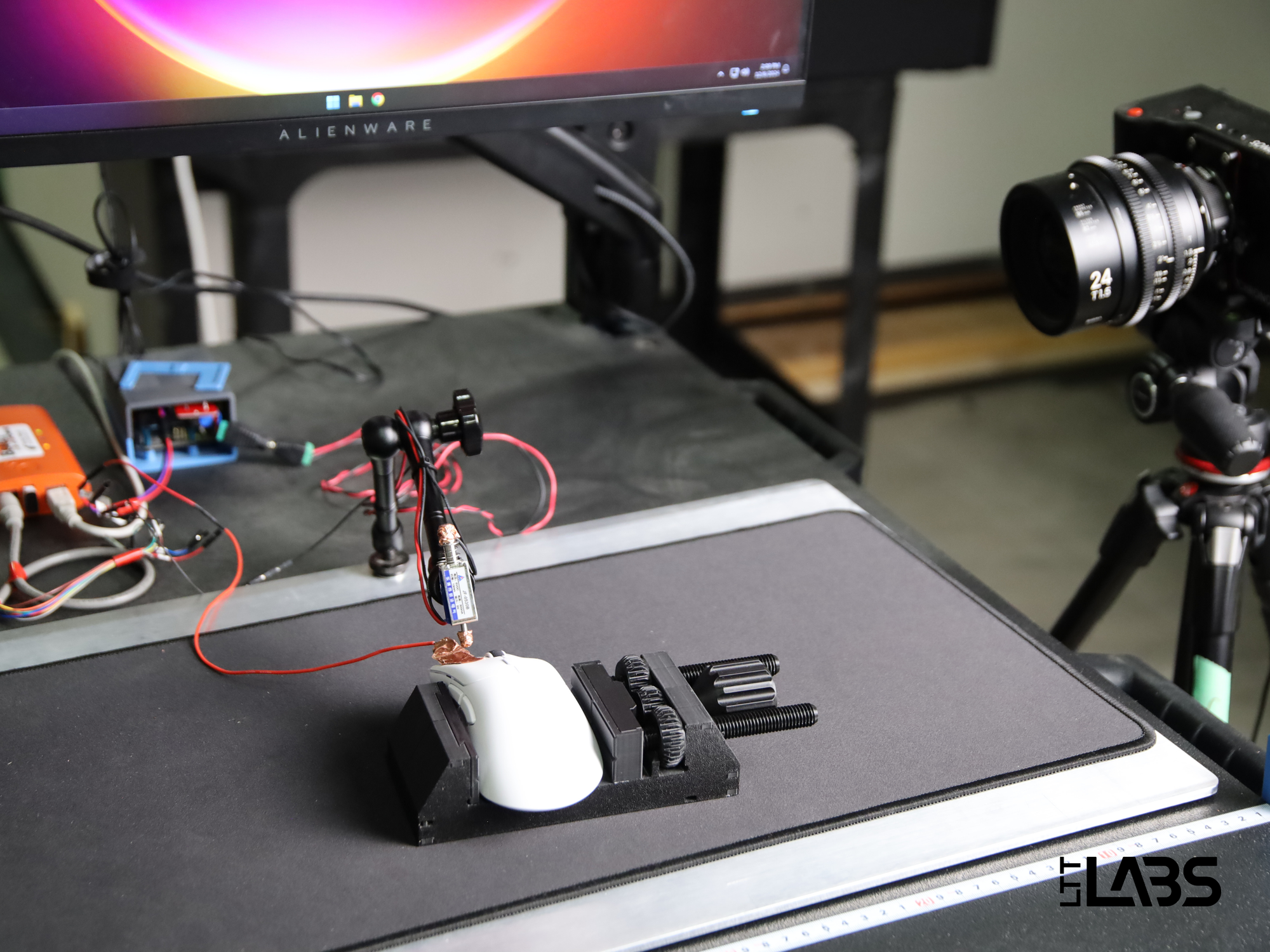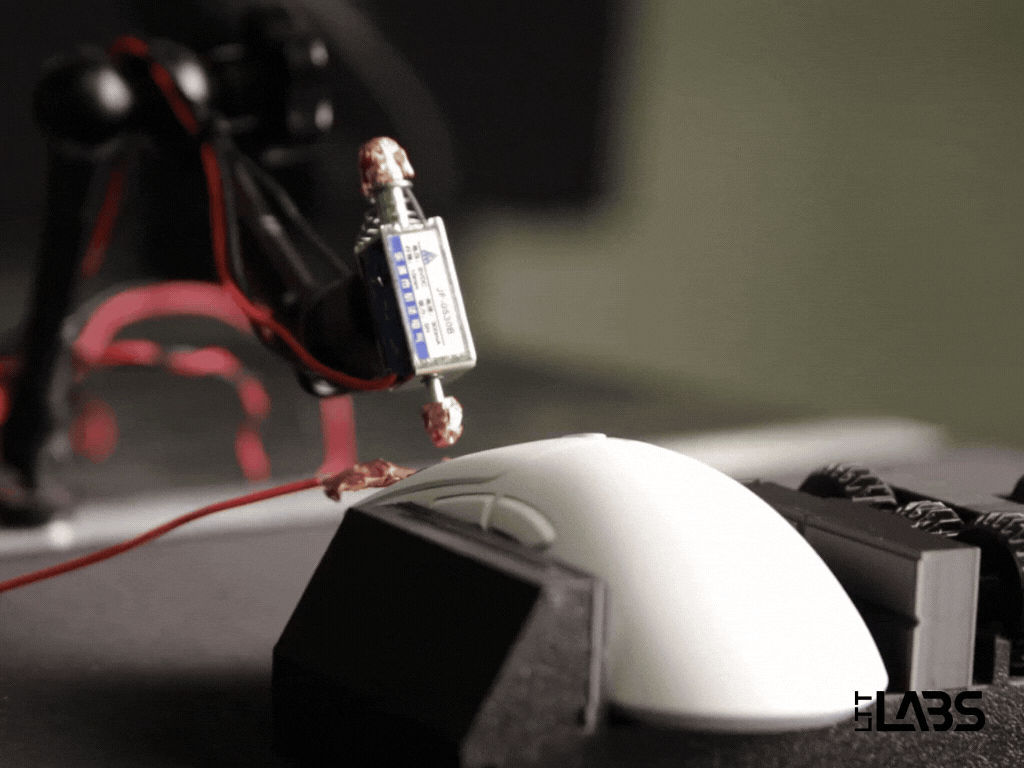 Our test bench is equipped to handle both latency and sensor tests. The latency test bench is shared with keyboard testing.