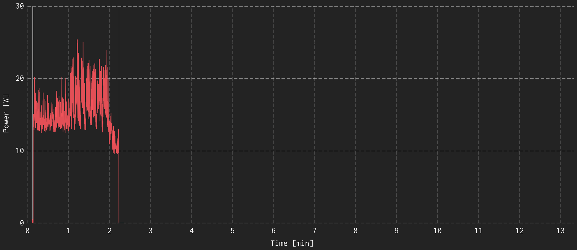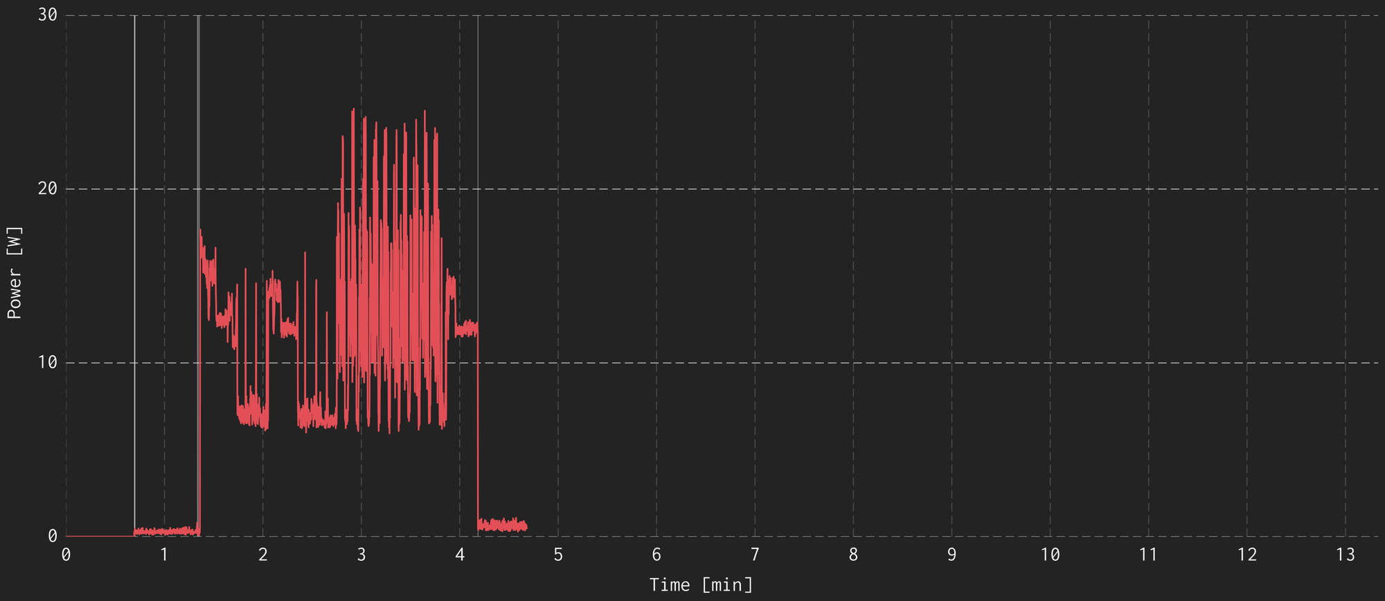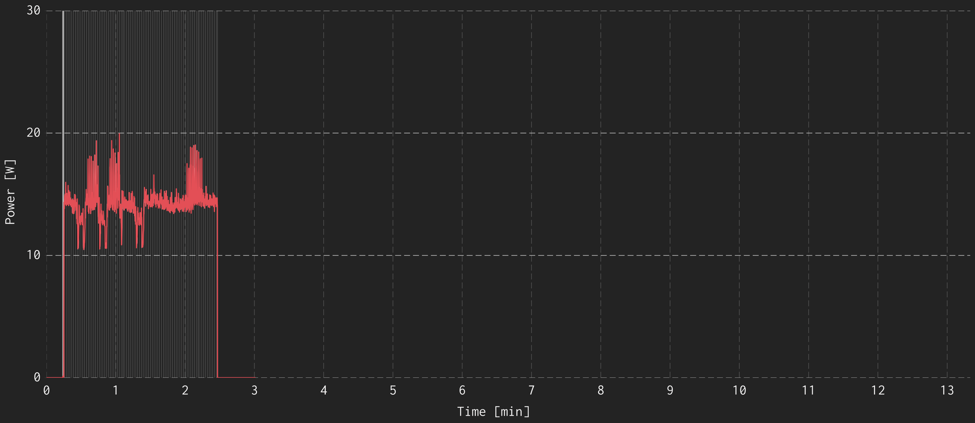 The tests vary in duration and I performed different actions with the Switch 2 in all cases, so they are not directly comparable. The sharp changes in measured wattage above/below 10 W are typically where the Switch 2 was turned on or off.