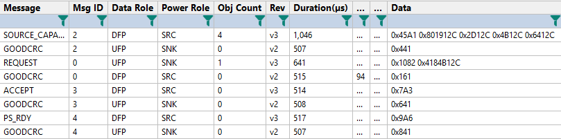 For the purpose of illustration, the example below is simplified and shows the minimum steps required in the process. USB-C PD traffic(like many communication standards) often looks like a conversation between devices.